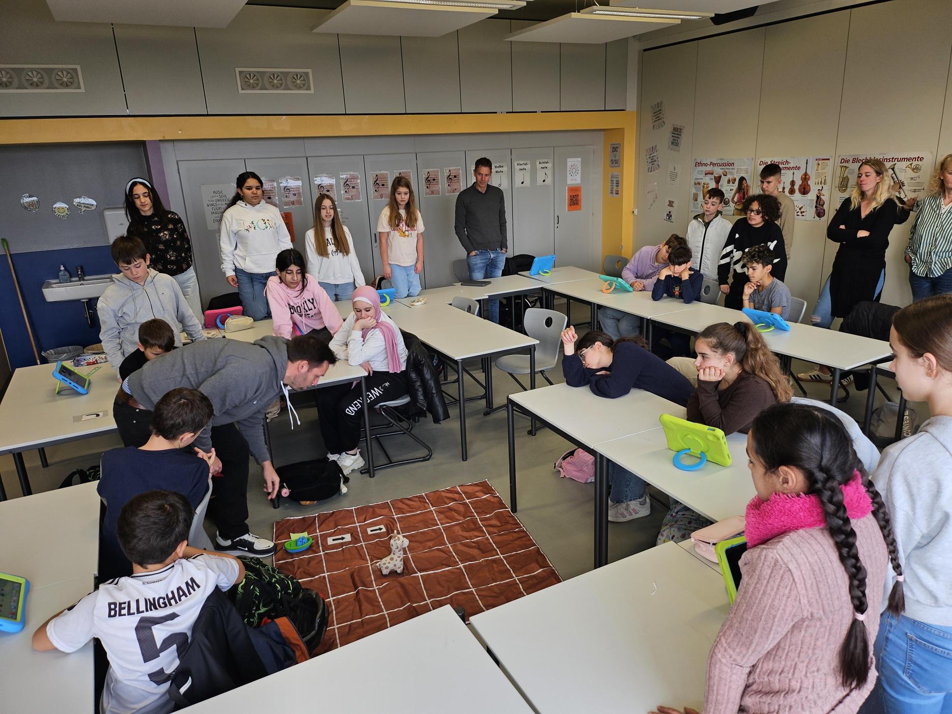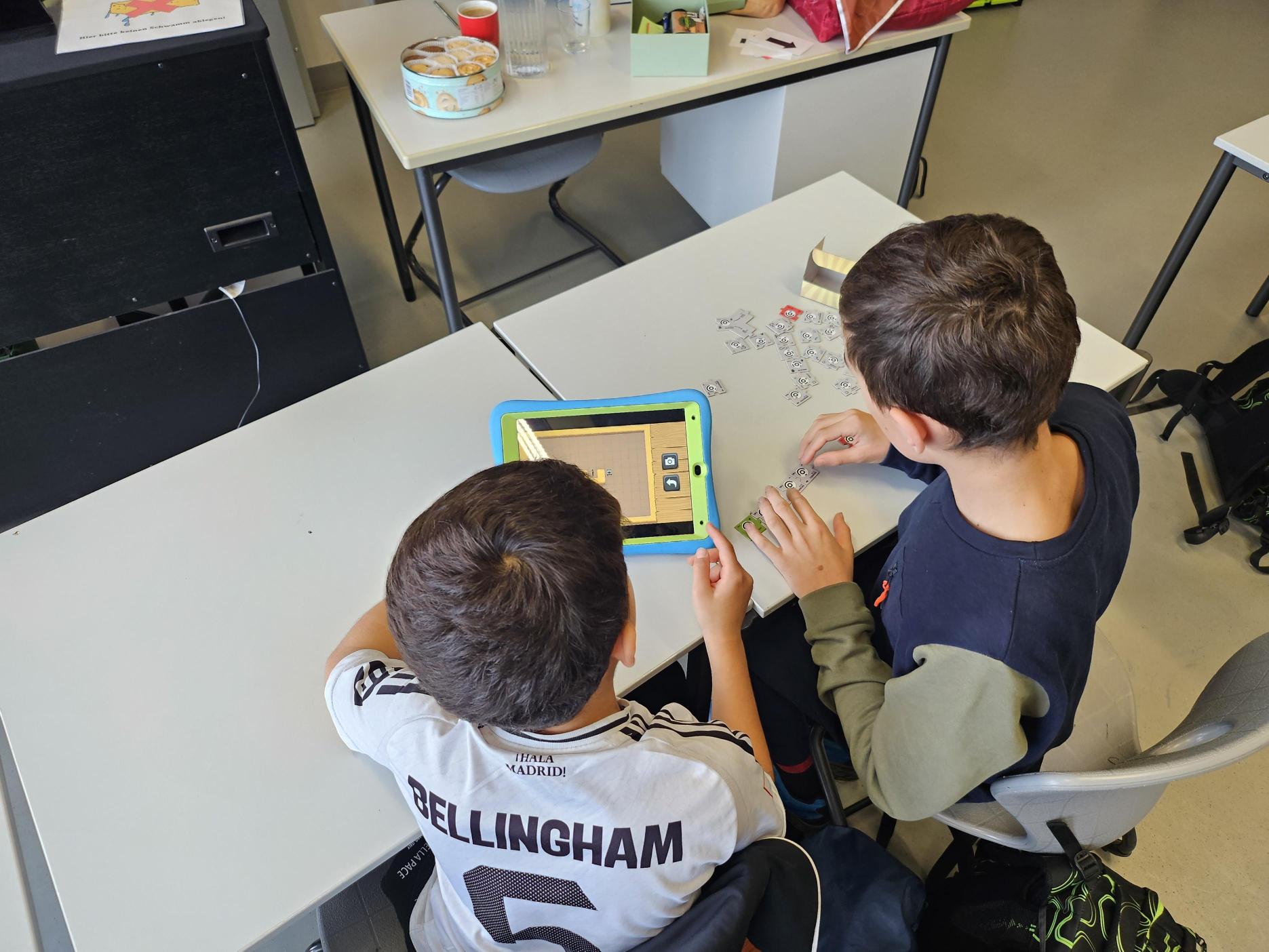 Zunächst lernten die Kinder durch das Spiel „Tangible“ und der passenden App die Programmiersprache kennen. Anschließend entwickelten sie in Kleingruppen eigene Songs mit Unterstützung der KI „Suno“.