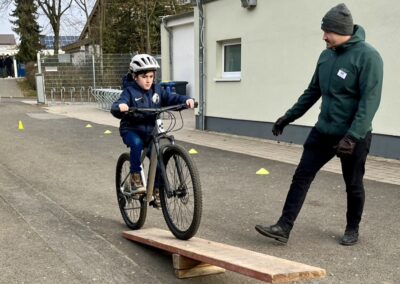 In der Turmhalle wurde ein Mitmach-Parcours zum Austoben angeboten und im Bewegungsraum konnten die Kinder die Kletterwand testen und schwierige Hindernisse und damit auch Ängste überwinden. Auch in den sportlichen Bereich gehört das Angebot der „Bikeschool“, hier durften die Viertklässler ihr Können auf Mountainbikes testen und einen Parcours durchfahren.