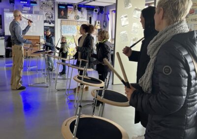 Im unteren Schulgebäude präsentierte sich der Fachbereich Kunst mit tollen Werken der Schüler und einem „Mitmal“-Angebot für alle Interessierten sowie der Fachbereich Musik, der seine Räume zeigte und dazu einlud, miteinander zu trommeln. Unterstützt wurden die Lehrkräfte von Mitgliedern der schuleigenen Event-AG.