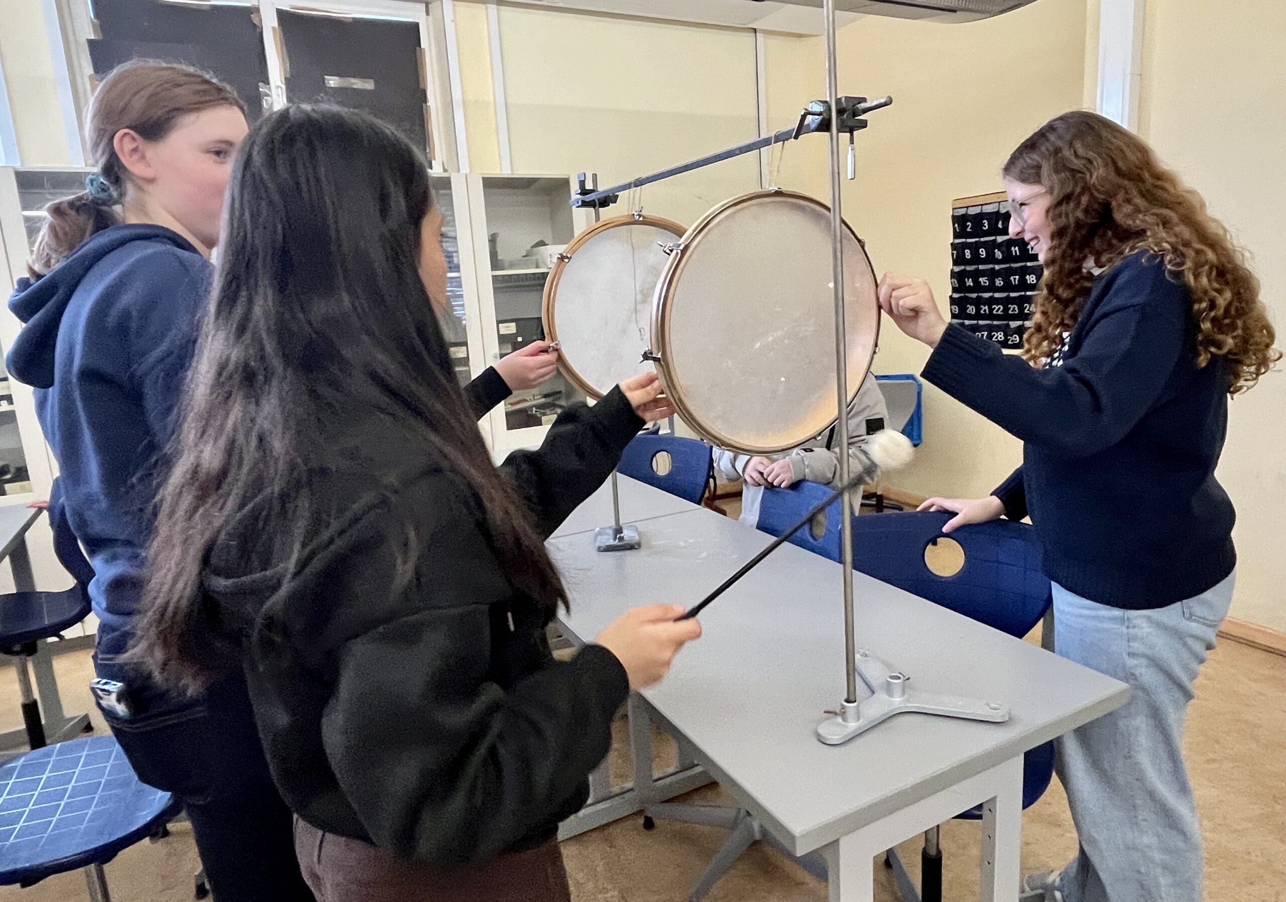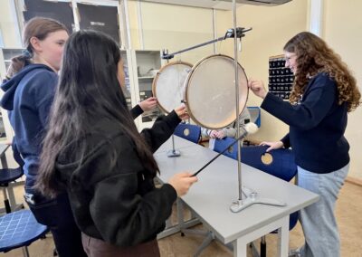Die Naturwissenschaften präsentierten sich in den Fachräumen im oberen Gebäude. In Physik gab es die Möglichkeit unterschiedliche Versuche selbst auszuprobieren und dabei physikalische Phänomene, beispielsweise Schallwellen oder Ausdehnung, zu beobachten. Auch der Fachbereich Chemie bot Experimente an, die die Besucher gerne ausprobierten.