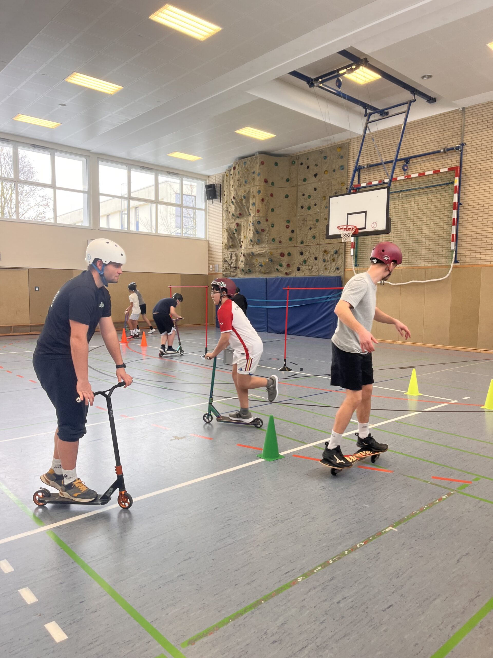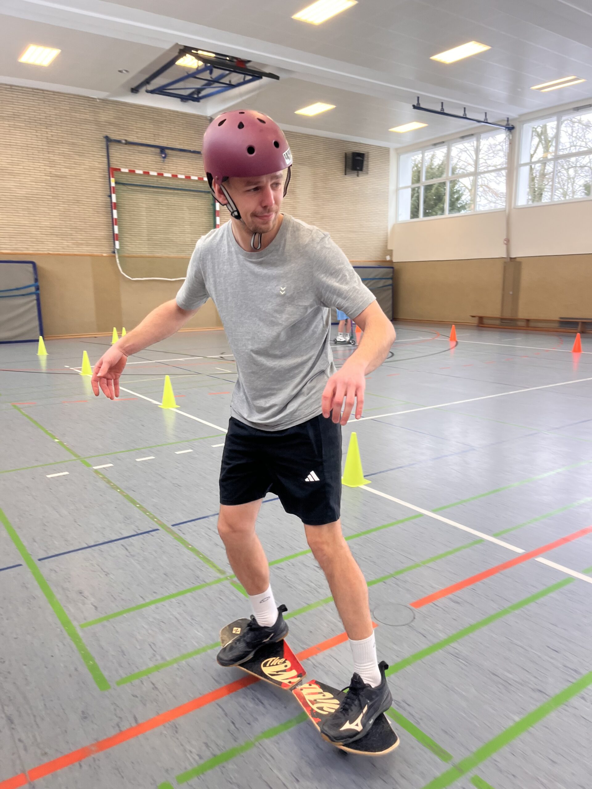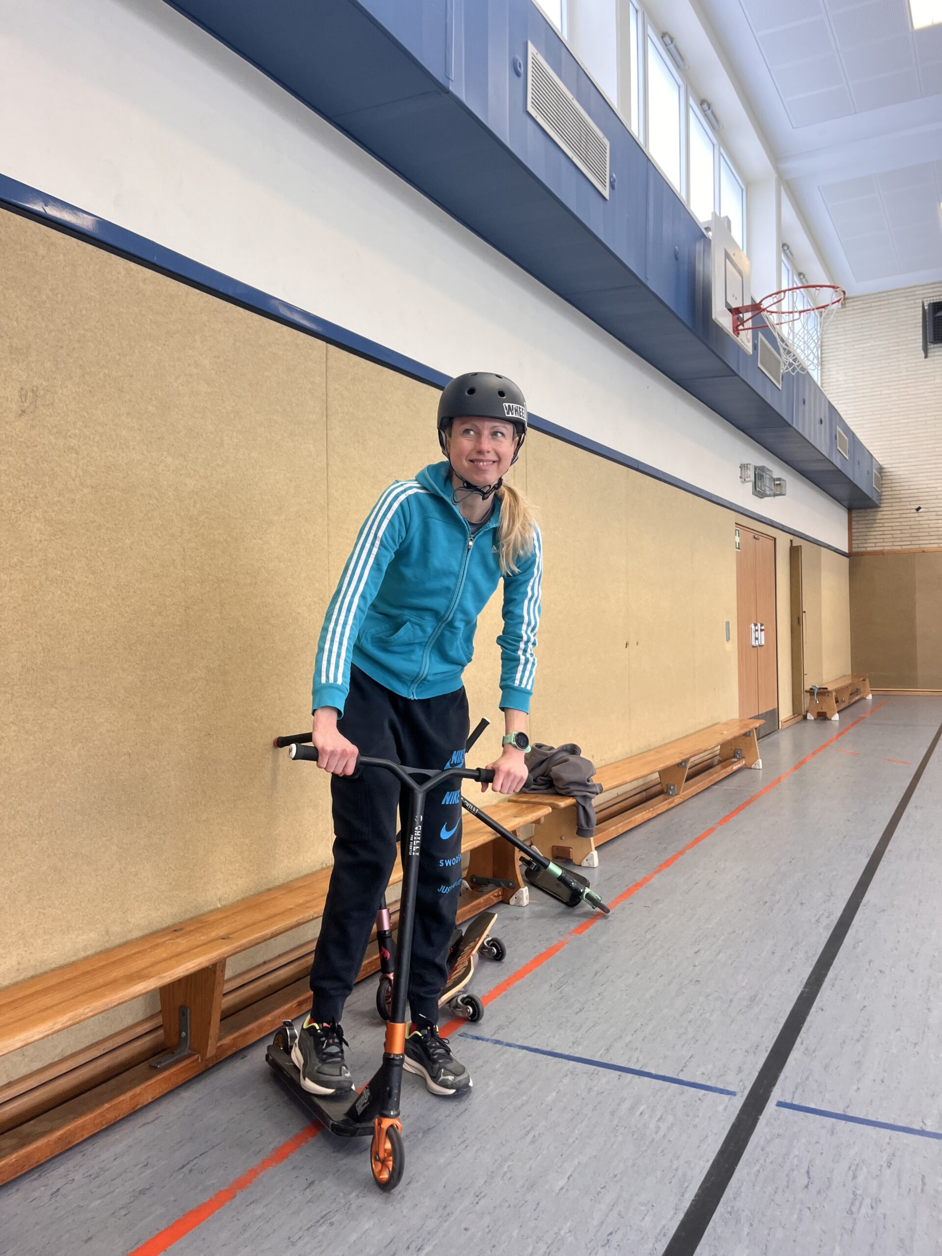 Ziel ist es, mögliche zukünftige Anschaffungen für den Sportfachbereich zu prüfen und neue Bewegungsangebote für Schülerinnen und Schüler zu schaffen. Unter der Organisation durch die Leiterin für das Ganztagsangebot der Schule, Julia Sust, wurde mit großem Engagement gefahren, balanciert und experimentiert: einhändig, freihändig sowie über Rampen und Wippen.